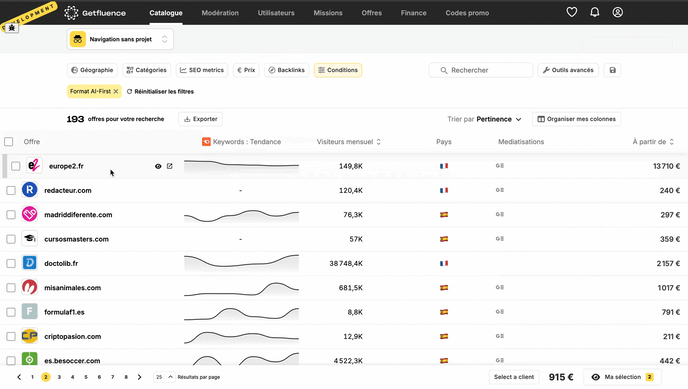 Only a selection of the Getfluence catalog is activated for AI-First™: the media sources actually cited by AI engines.